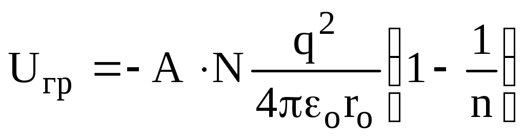 де А=1,6 ÷ 1.8 – стала Маделунга, яка враховує енергію взаємодії даної молекули з другими молекулами в кристалі.