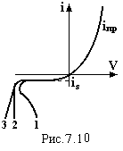 що також приводить до зростання прямого струму. Закон його зміни також описується формулою (7.8), а вольт-амперна характеристика має вид рис.7.10. Але на відміну від діодів Шотткі, діоди на основі p-n-переходу мають значно більший коефіцієнт випрямлення 108÷109.
