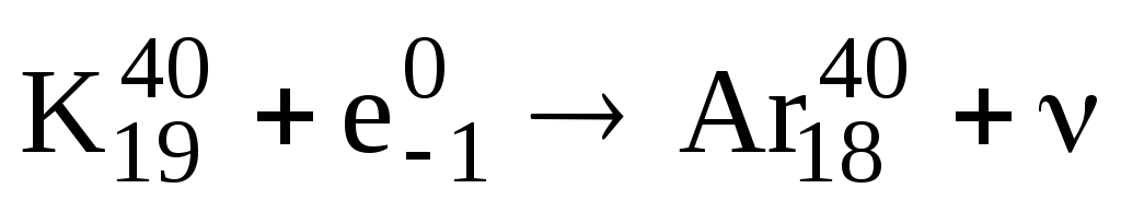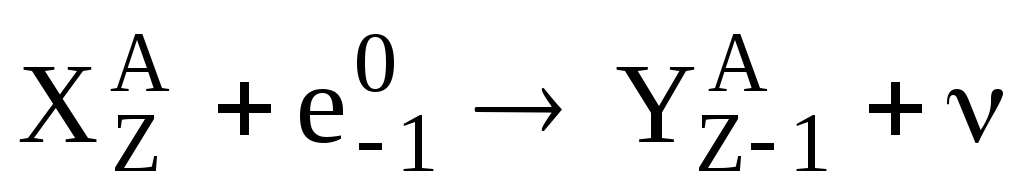 – електронний захват полягає в поглинанні (захопленні) ядром електрона першої електронної орбіти (К-орбіти), так як вона найближча до ядра. Значно рідше захоплюються електрони з більш віддалених орбіт: другої L, або третьої М – орбіт. В результаті такого захвату один із протонів перетворюється в нейтрон, випромінюючи нейтріно