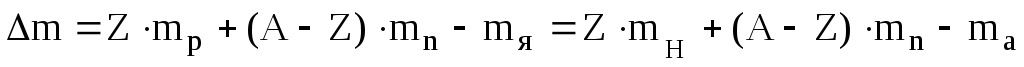 Тут mя, ma - маси ядра і атома відповідно, mH – маса атома водню.