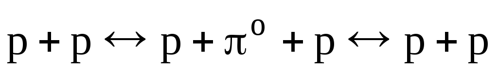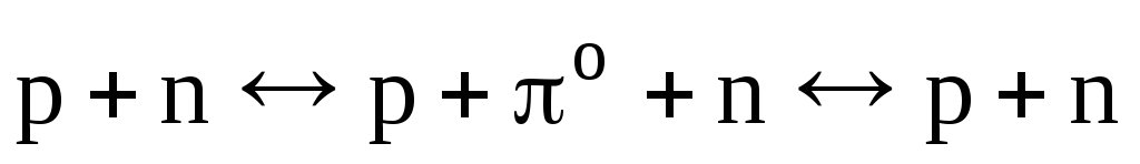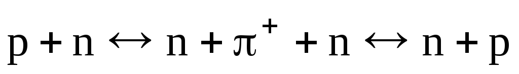 Протон випромінює π+ - піон, перетворюючись у нейтрон. Цей піон поглинається нейтроном. Утворюється протон. Далі процес іде в зворотному напрямку. Схематично його можна записати так