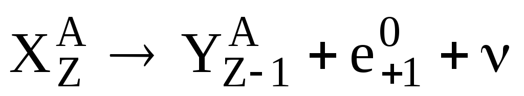 – β+ - розпад, або позитронний розпад. Уцьому випадку із ядра вилітає позитрон – частинка, яка має заряд +е і масу електрона.