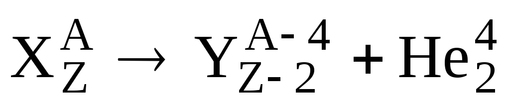 α – розпад протікає по схемі (Х, Y – символи вихідного і кінцевого елементів відповідно):