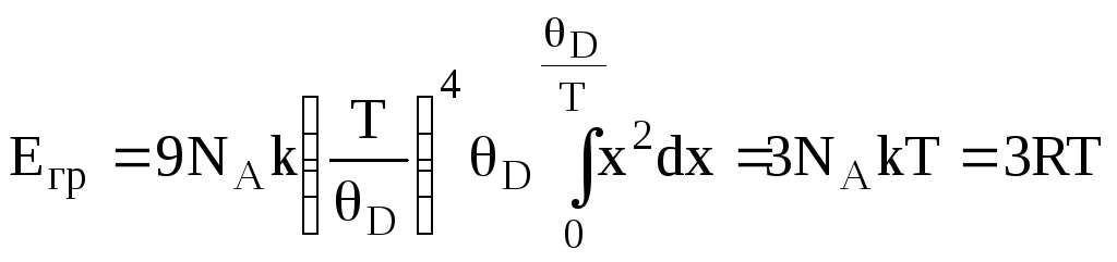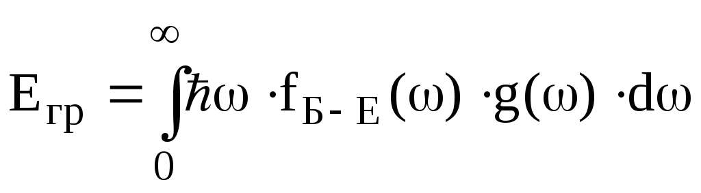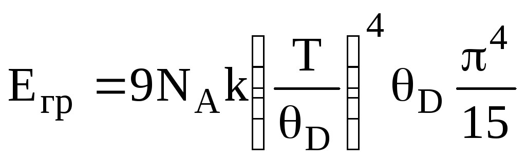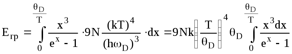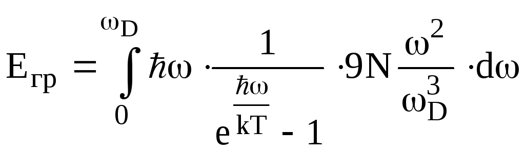 Квантова теорія теплоємності твердих тіл була розроблена у 1912 році німецьким фізиком Дебаєм в рамках фононної моделі твердого тіла. Термодинамічна енергія кристалу складається із енергії нормальних коливань. Знайдемо коливальну енергію Егр кристалічної гратки як енергію усіх фононів із врахуванням розподілу по частотам (енергіям), аналогічно, як це робилося в розділі 2.5 (див. чисельник формули (2.14))