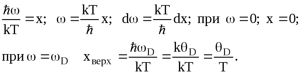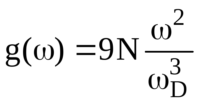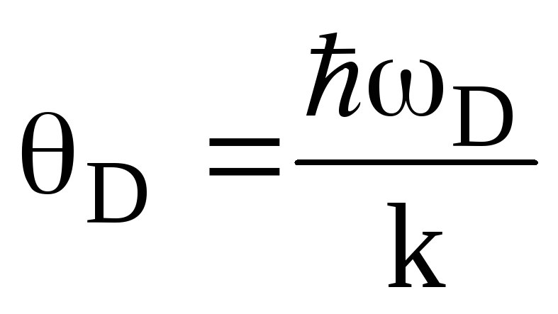 У формулу (3.4) входять характерні для кожної речовини величини: міжатомна відстань а і швидкість поширення пружних коливань, тобто швидкість звуку υ. Тому для кожної речовини частота Дебая різна і являється її характерним параметром. Наприклад, для міді а=3,610-10м, υ = 3550 м/с, ωD = 31013 Гц.