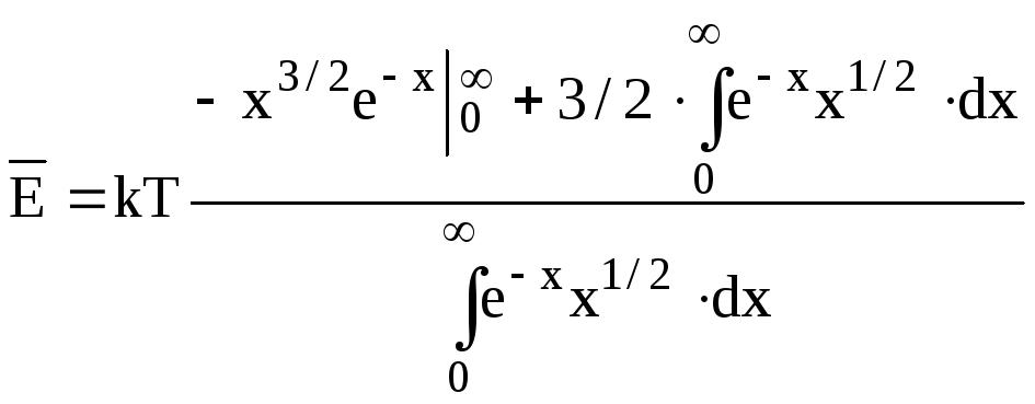 Перший доданок в чисельнику після підстановки меж інтегрування дає нуль. Після скорочення інтегралів одержуємо відому із молекулярно-кінетичної теорії формулу для середньої енергії