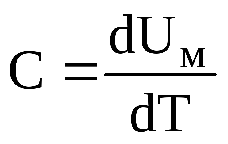 Молярною теплоємністю називається кількість теплоти, яку необхідно передати 1 молю речовини, щоб температура збільшилась на 1К. Передану теплоту поглинають молекули і атоми, тобто відбувається зміна внутрішньої енергії Uм за рахунок теплопередачі. Отже молярна теплоємність знаходиться за формулою
