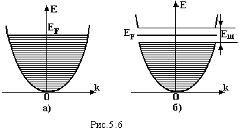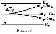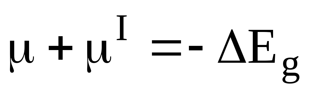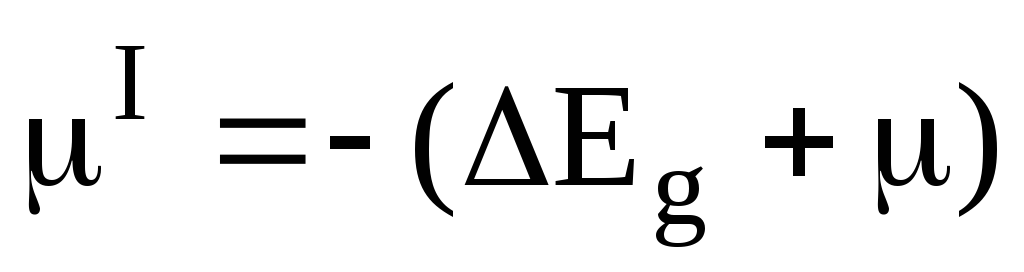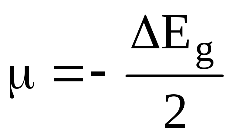 Тут NC і NV – ефективна концентрація станів у зоні провідності і у валентній зоні відповідно. Так як μ і μI від’ємні (див. рис.5.7) можна зробити висновок: чим далі знаходиться рівень Фермі від границі зони тим менша концентрація відповідних вільних носіїв заряду – електронів у зоні провідності, дірок у валентній зоні. Добуток концентрацій електронів і дірок