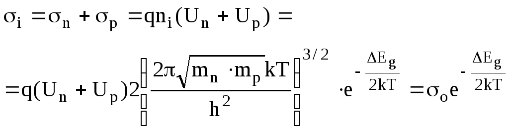 Індекс і означає, що мова йде про власний напівпровідник. Електропровідність власних напівпровідників складається із електронної і діркової компонент, тобто
