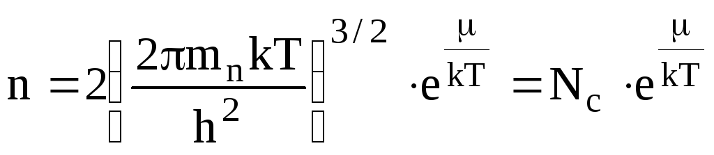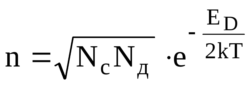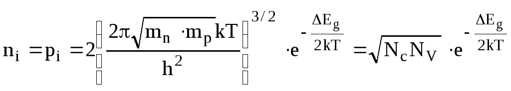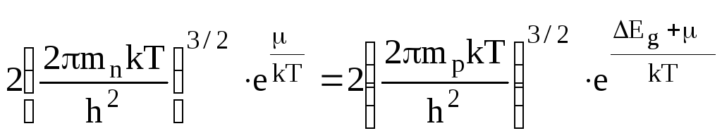не залежить від положення рівня Фермі, а визначається тільки шириною забороненої зони ΔЕg і температурою. Це співвідношення називається законом діючих мас.
