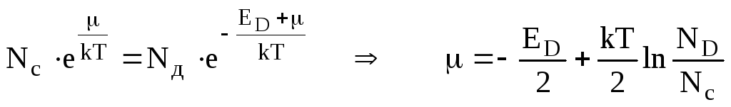 Рівень Фермі при Т=0К знаходиться посередині між дном зони провідності і донорним рівнем. Концентрацію електронів знайдемо після підстановки (5.23) в (5.17)