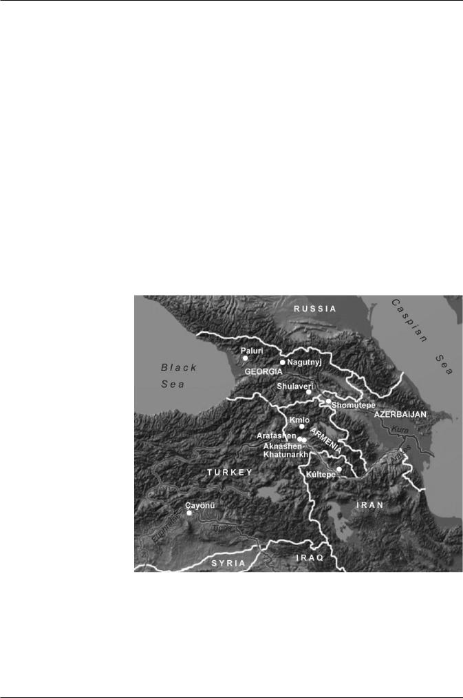 If the cultures that developed in the centre of the Southern Caucasus, of which Armenia is part, are compared to those of the northern Near East or the neighbouring regions bordering the Black Sea and the Caspian Sea, it is clear that there is a large gap in our knowledge of the beginnings of Neolithisation. Indeed, in the basin of the Kura, in Georgia and Azerbaijan, it is only at the beginning of the 6th millennium calBC that a culture appeared (the Shulaveri-Shomutepe culture) that possessed an advanced mastery of the domestication of plants and animals (Kush-