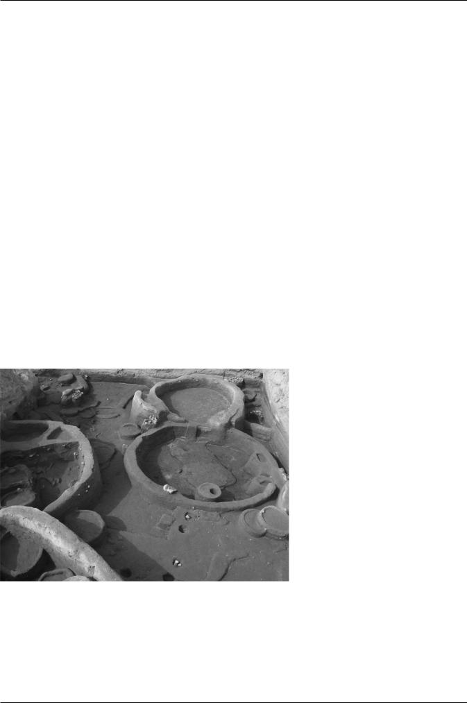 The inhabitants of these settlements were farmers (naked wheat, emmer, six-row barley, and lentil) and herders (sheep, goats, cattle and rare pigs). Constructions, circular in plan with diameters from 3 to 5 m, were built in pisé or, more rarely, in mud bricks. There is a high concentration of small structures within or outside the constructions; they were generally used as silos (to stock grain or sometimes tools) or as ovens (Fig. 5).