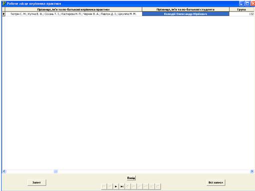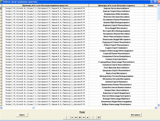 Розроблена програма представляє собою базу даних на студентів ІІІ курсу, що в даному році проходять різні види практики на різних підприємствах. Текст програми приведений у додатку А.