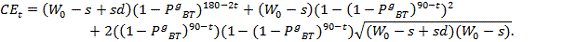 this case the derivative of the expected payout amount that a bookmaker has to pay as a “cash out” equals to zero what implies that the expected payout amount is constant over time. Such result means that a bookmaker is indifferent whether to offer a CE as a “cash out” amount at the very beginning of the game, sometime during the game or to wait until the end. As a bettor wants to avoid the uncertainty, he will accept the cash out offer in the very beginning of the game at the price that a bookmaker will offer, and the amount proposed by a bookmaker will be fair. Again, this is the case when a “cash out” option is senseless.