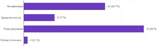 Рисунок 6. Ответы респондентов о причине не раздражительности ролика.