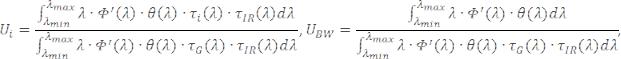 Для оценки влияния СКС на чувствительность ТВ камеры была предложена следующая методика. В соответствии с полученными выражениями рассчитываются относительные уровни видеосигнала в пикселах для цветного ФП (Ucolor_i) и монохромного (UBW):