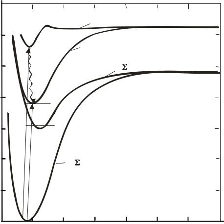 Азотный лазер работает на электронно-колебательных переходах с генерацией на длине волны 337 нм. Он широко используется для накачки лазеров на красителях. Схема уровней молекулы N2 приведена на рис.1.3.