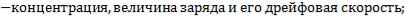 -= заряду, проходимому в единицу времени через единичное сечение проводники. Если заряды разных знаков и имеют разные параметры,