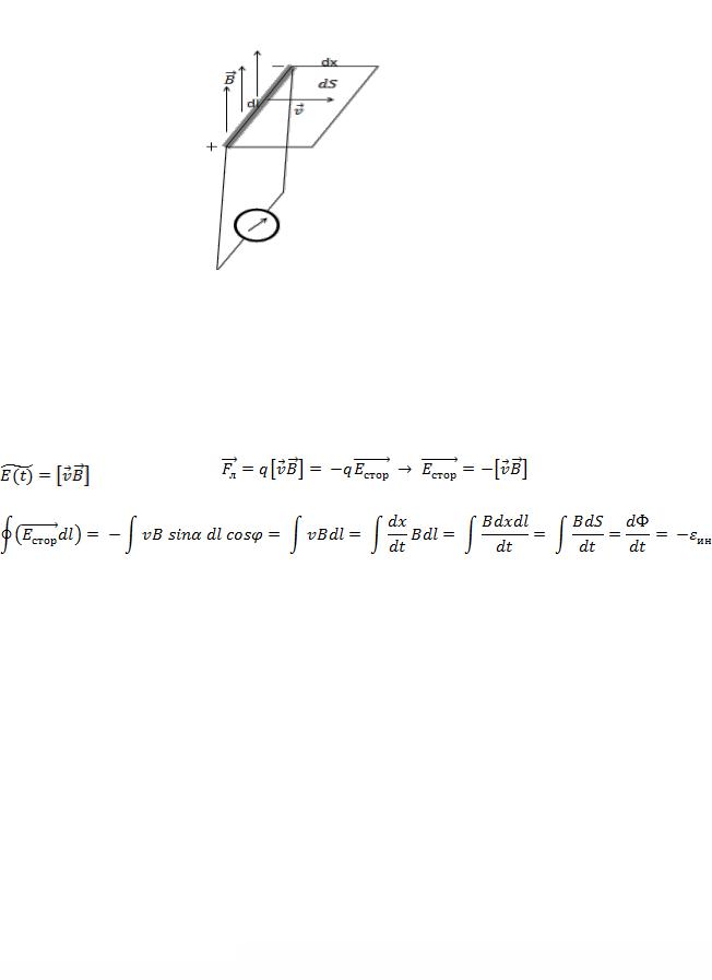проводника возникает разность потенциалов и во внешней цепи –электрический ток. Казалось бы, что силы магнитного поля разделяют заряды и выступают в роли сторонних сил.