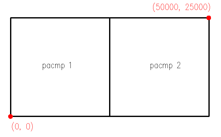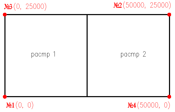 Выставляем параметры проекта (М 1:50000, метры) и координаты нижнего левого (0,0) и верхнего правого угла координатной сетки (50000, 25000), см. рис.1