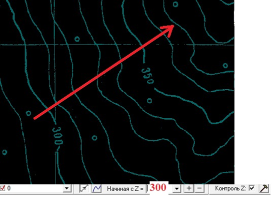 Обводя горизонтали «бегунком», можно изменить его скорость: Сервис → Параметры трассировки → Стратегии → Скорость (изменить с помощью мышки).