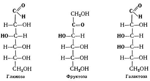 •гексозы — глюкоза, галактоза, фруктоза;