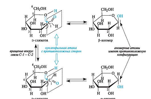 Циклоцепная таутомерия обусловлена переходом открытых форм моносахаридов в циклические и наоборот.