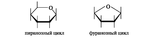 В результате циклизации образуются термодинамически более устойчивые фуранозные (пятичленные) и пиранозные (шестичленные) циклы. Названия циклов происходят от названий родственных гетероциклических соединений - фурана и пирана.