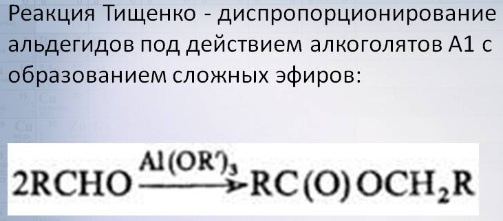 ацеталей и полуацеталей, реакция диспропорционирования и альдольной конденсации, ОВР, образование оснований Шифра.