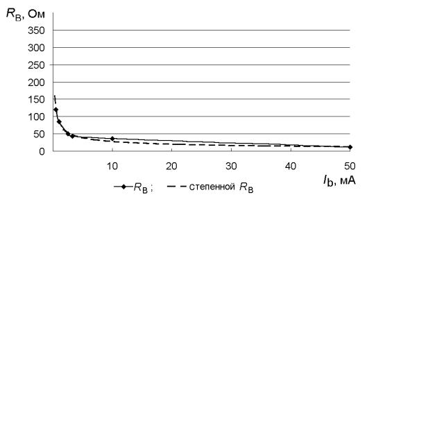 висимости степенным рядом Microsoft Excel. Из данного рисунка можно определить значение сопротивления базы RB при нулевом токе 400 Ом. В