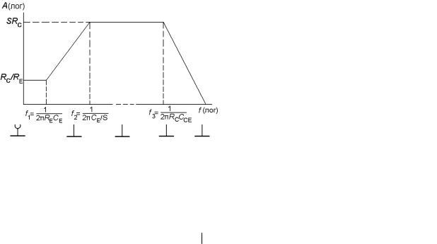 тельна, конденсатор CE должен шунтировать переменное напряжение в требуемой области частот. Для определения требований к его номиналу рассмотрим частотную характеристику усиления, обусловленную CE.