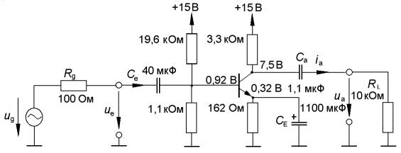 2.Рассчитать сопротивления, обеспечивающие положение рабочей точки и заданное усиление по напряжению по формулам (2.1)–(2.18) разд. 2, используя параметры модели транзистора, экспериментально измеренные в соответствии с разд. 1.