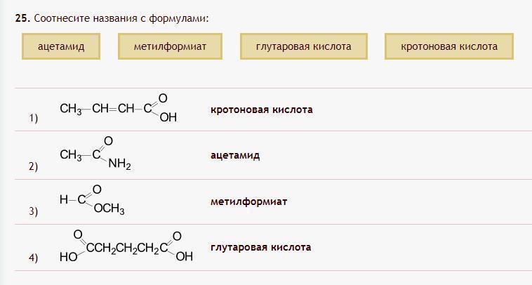 Соотнесите название соединения с его формулой: