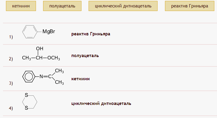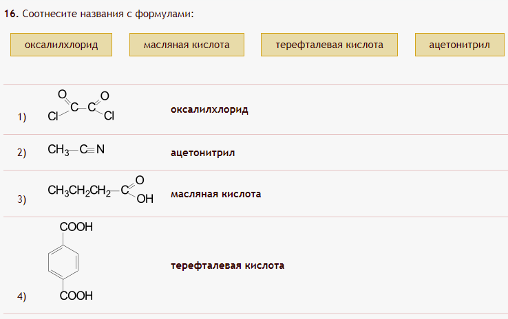 соответствие между названием органического