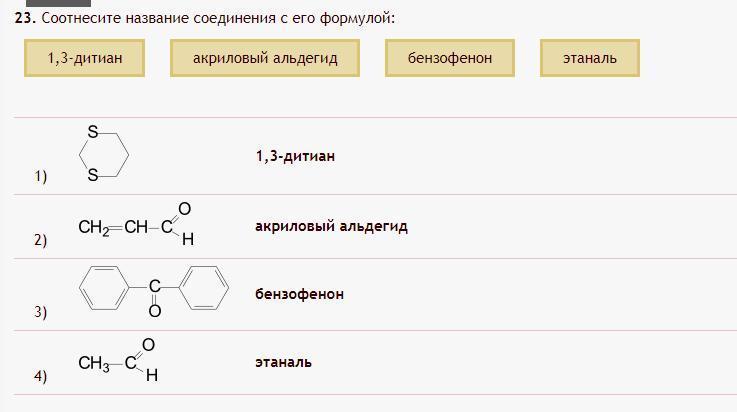 этаналь, 1,3-дитиан, бензофенон, акриловый