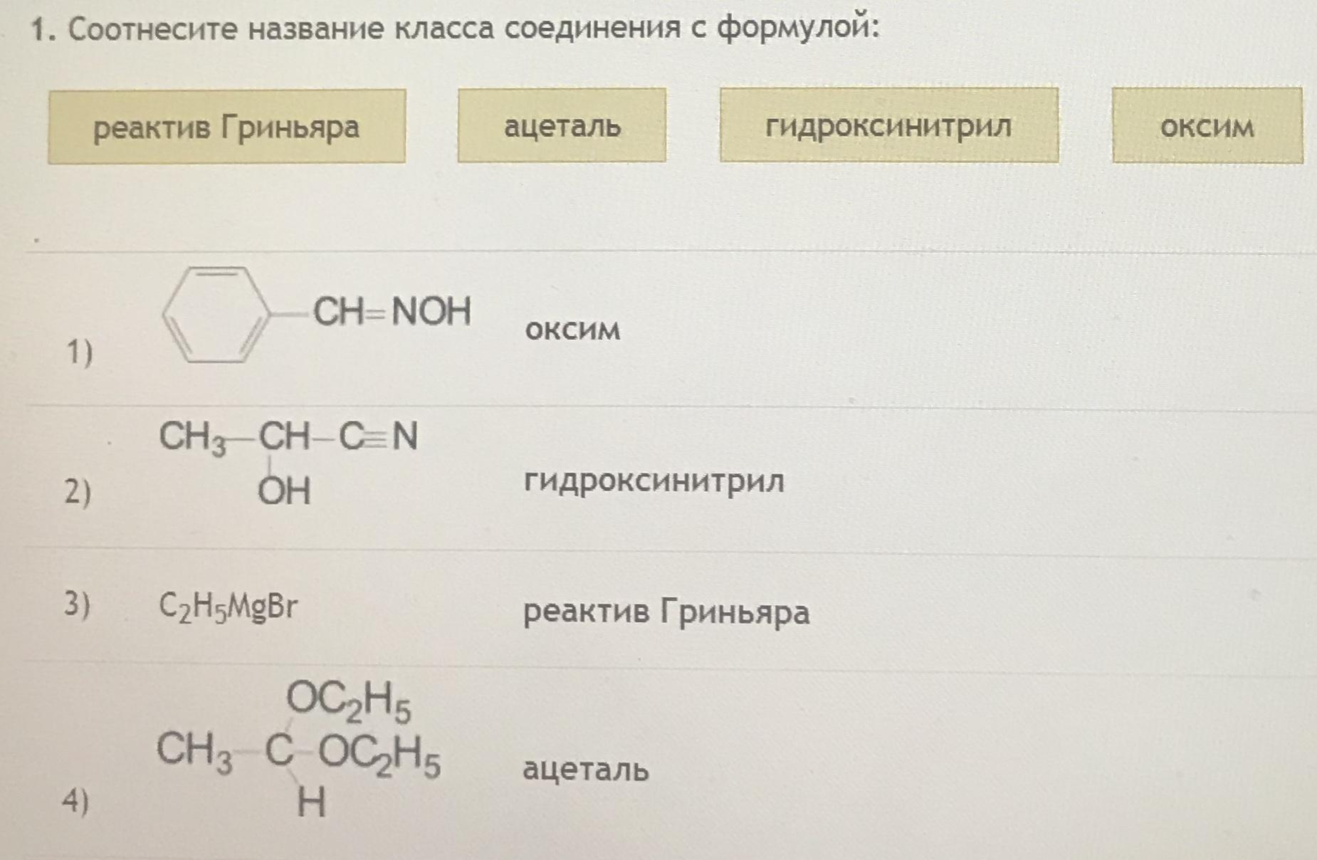 реактив Гриньяра, ацеталь, гидроксинитрил, оксим
