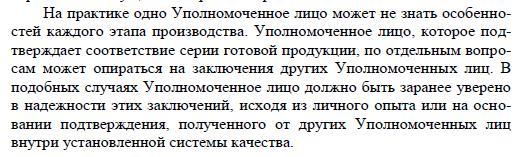 Квалификация уполномоченного лица должна соответствовать установленным требовани-ям. Уполномоченное лицо должно входить в штат предприятия – производителя лекар-ственных средств. Его обязанности могут быть переданы только лицам, имеющим статус уполномоченного лица.