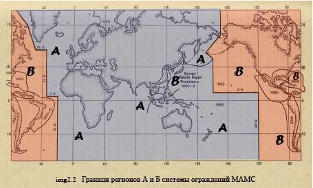 Страны, принявшие красный цвет окраски средств навигационного оборудования (СНО) с левой стороны фарватера, относятся к региону А; страны, принявшие зеленый цвет окраски СНО с левой стороны фарватера,- к региону Б.