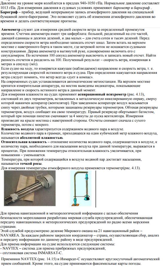 81. Судовые метеорологические приборы. Измерение атмосферного давления, ветра, температуры воздуха и воды. Определение относительной влажности воздуха.