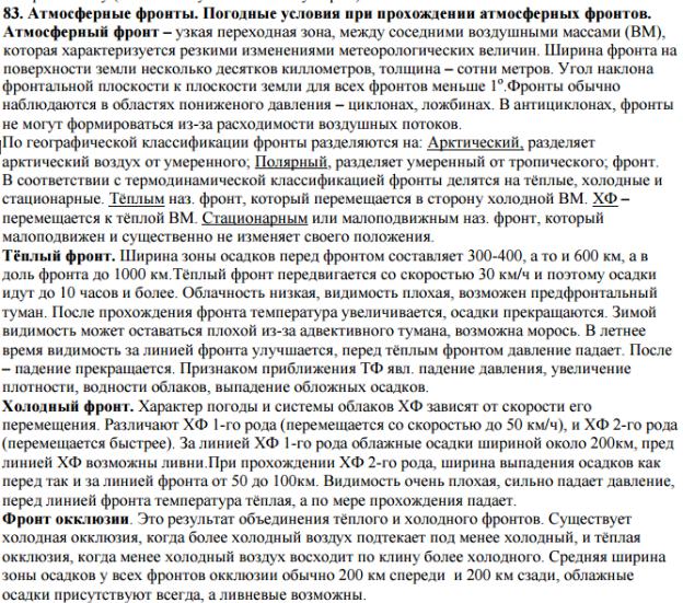 83. Атмосферные фронты. Погодные условия при прохождении атмосферных фронтов.