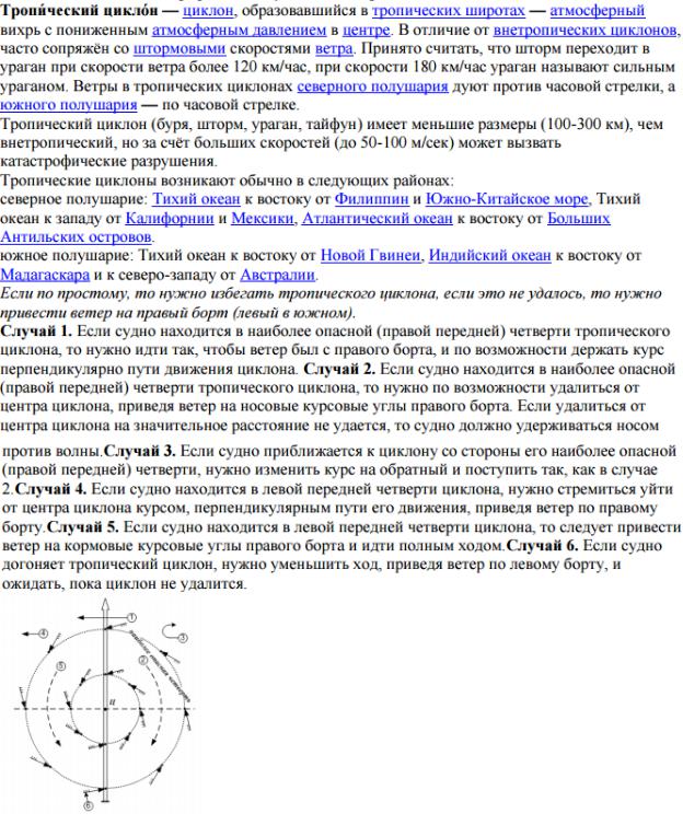 84. Тропические циклоны, характерные траектории их движения. Особенности погоды. Рекомендации по маневрированию судна в зоне тропического циклона.