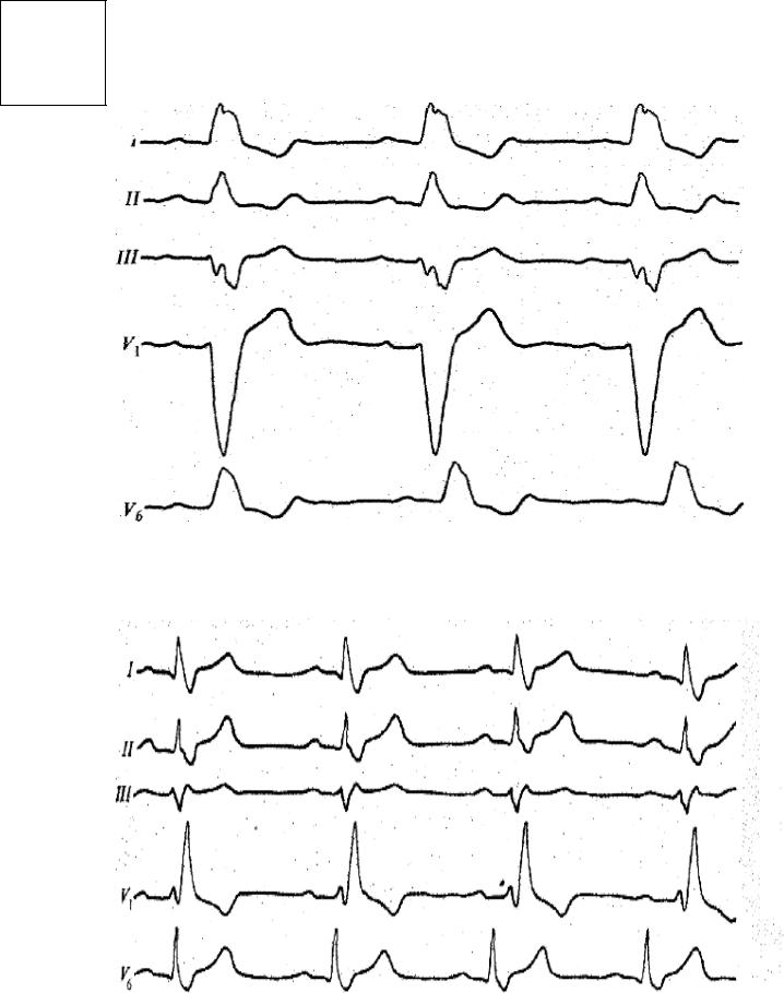 (1)wide and deformed QRS has the form of qR in I,II, V5-6; rS in III, aVF, V1-2 ;
