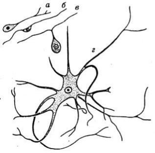 Различные типы нейронов: а - униполярный, б - биполярный,