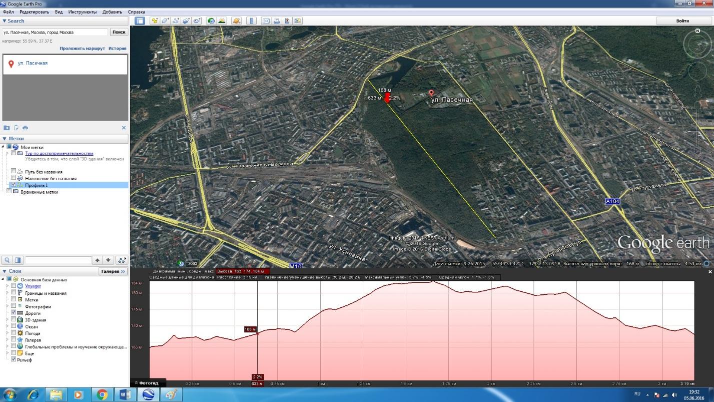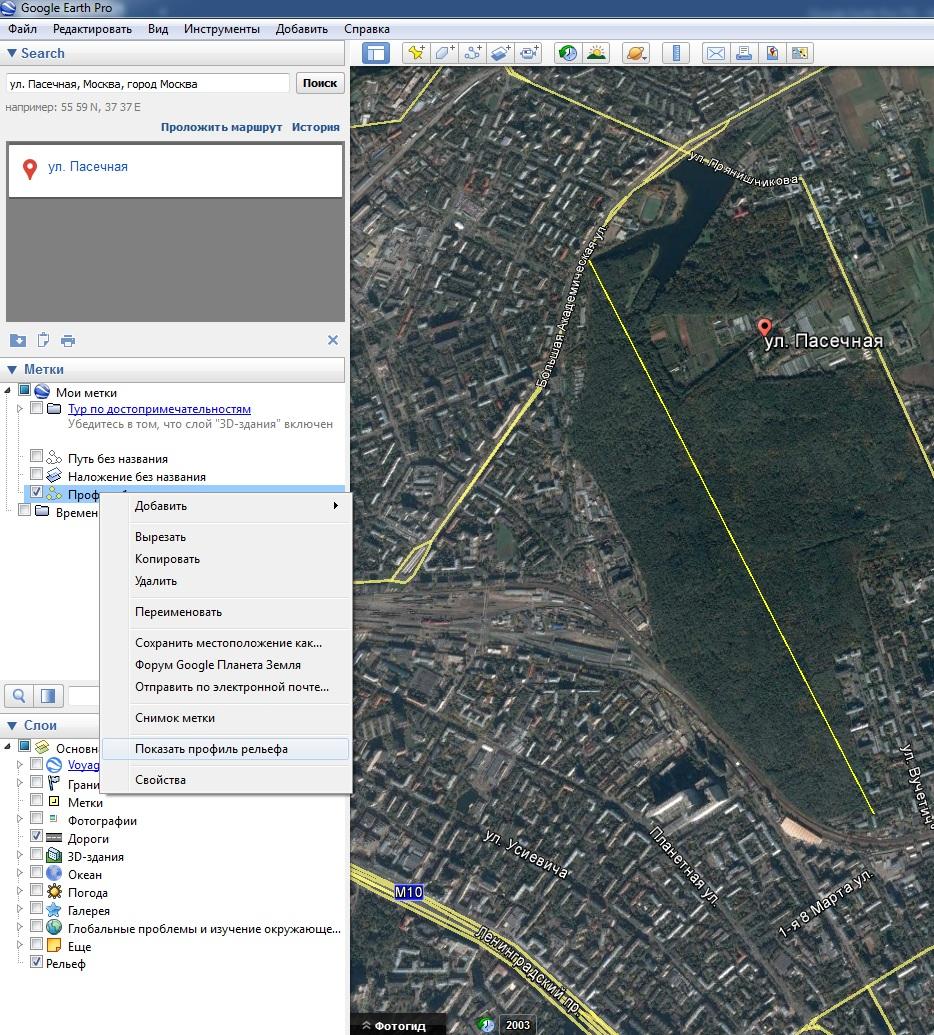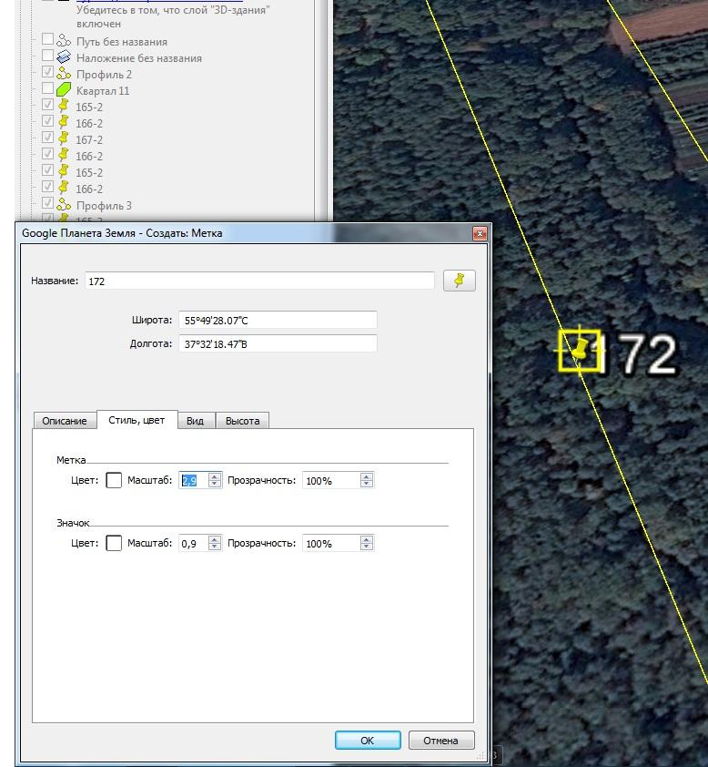 Рис. 8 Установка точек профиля. Вид с экрана программы Google Earth