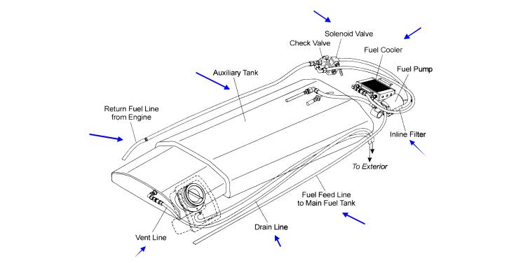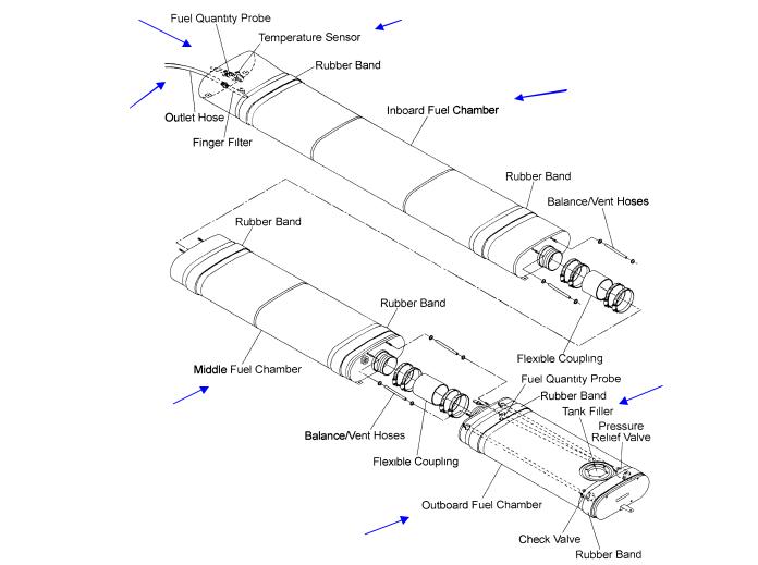 Рис. 44. Схема подачи топлива из дополнительного бака в основной топливный бак (левое крыло, правое крыло – аналогичны)