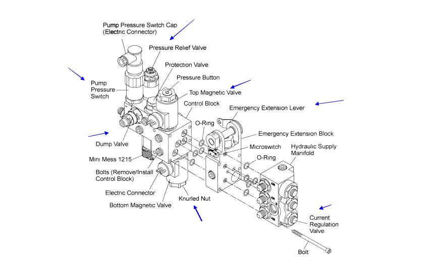 Нормальный уровень гидрожидкости в баке – 0,9 л. Давление переключения насоса 96,5 113,8 бар. Гидронасос приводится в действие электродвигателем.