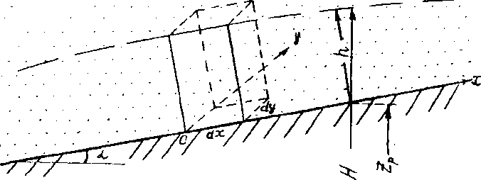 Рис. 2.8. Схема к выводу уравнения плановой фильтрации в безнапорном пласте