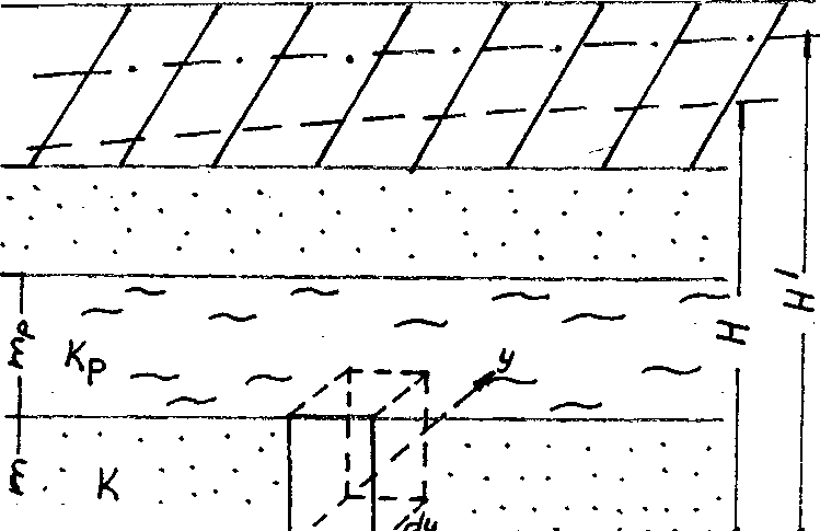 Принимая теперь вторую предпосылку перетекания, т.е. считая, что длина пути фильтрации по слаоопроница- емому слою равна тр, получаем, что градиент фильтрации здесь равен: