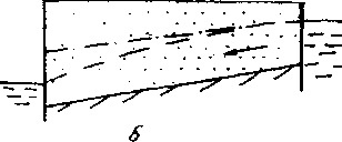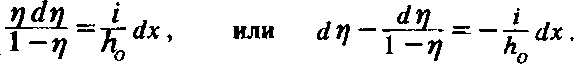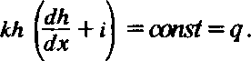 Отсюда видно, что при наклонном водоупоре градиент безнапорной фильтрации определяется не только изменением мощности потока, но и уклоном водоупора. Следовательно, движение в этом случае возможно и при постоянной мощности потока — в отличие от случая горизонтального водоупора. При h = const скорости потока во всех сечениях остаются постоянными. Расход такого равномерного потока